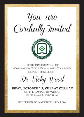 Washington State Community College is excited to announce the Inauguration of the College’s seventh president, Dr. Vicky Wood. The Inauguration will take place on Friday, October 13, 2017 at 2:30pm in the Graham Auditorium. A reception to immediately follow in the WSCC Commons.